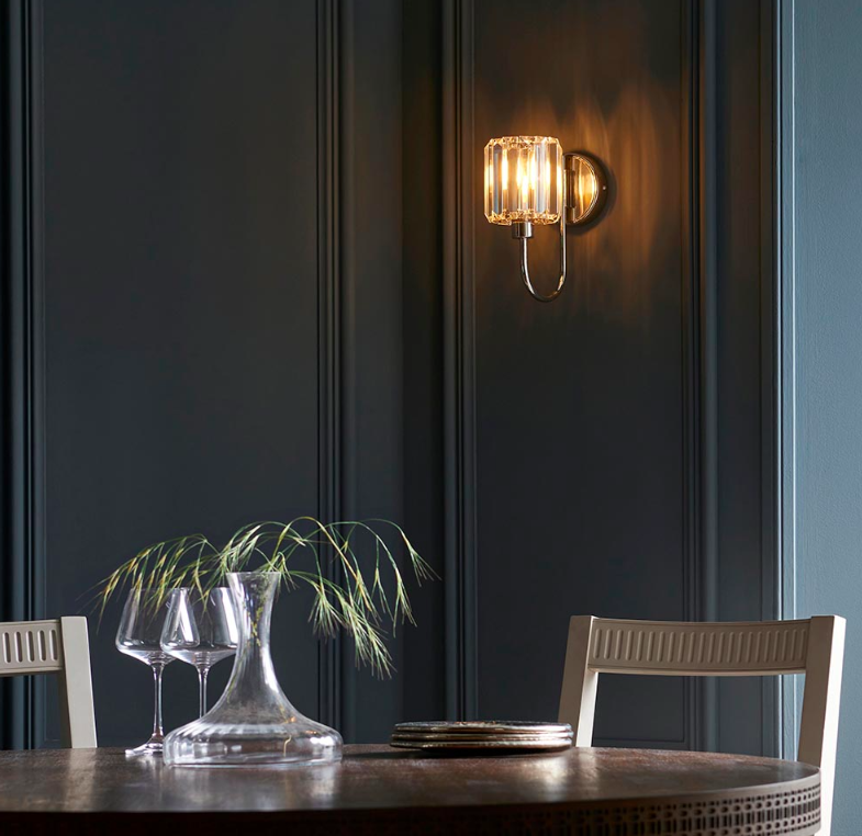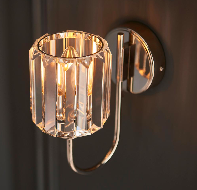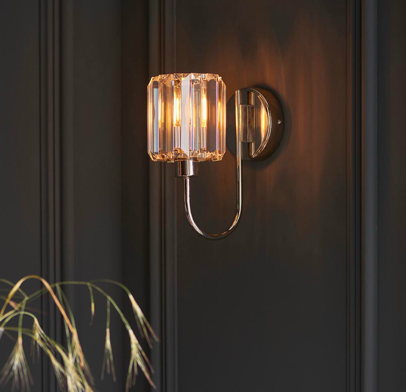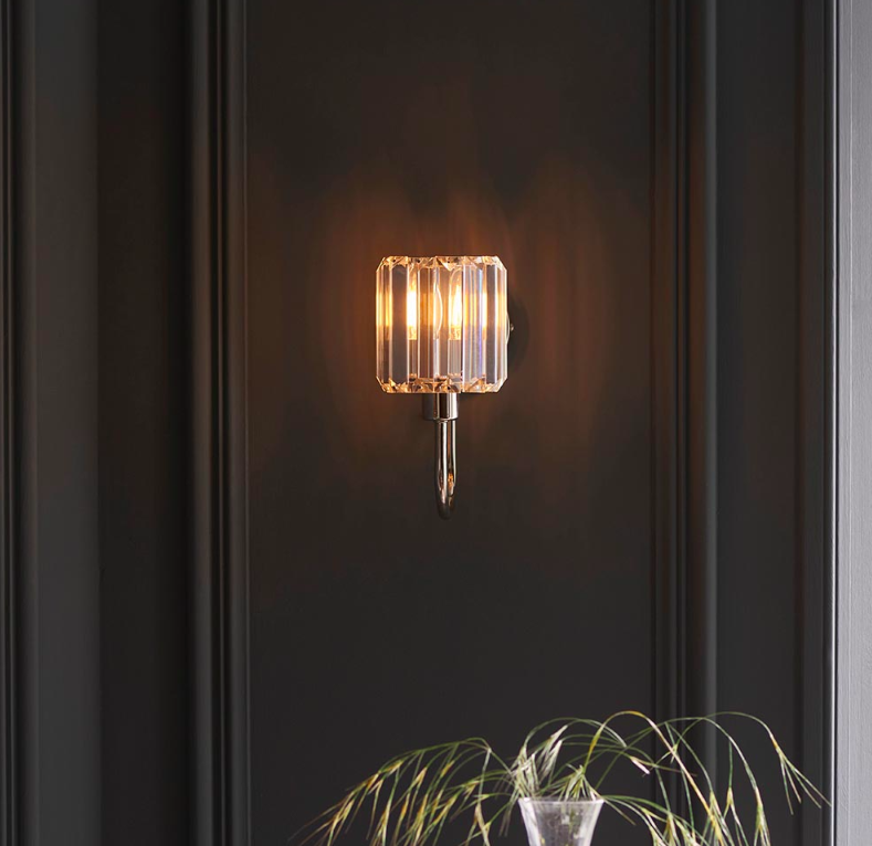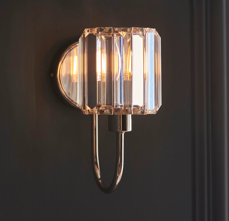 Srebrny kinkiet w stylu glamour Berenice z fasetowanego szkła