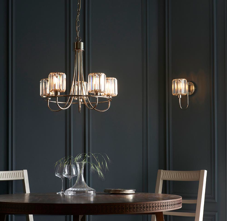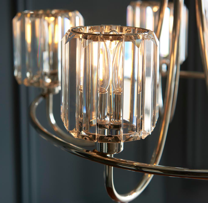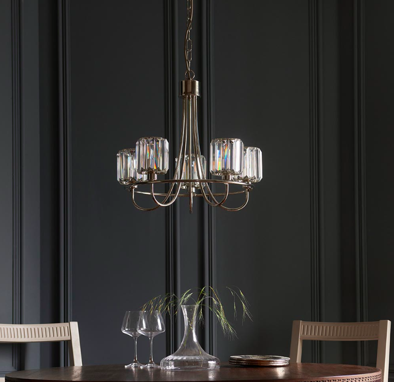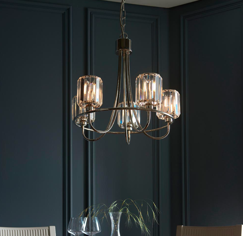Napisz pierwszą opinię o „Srebrny żyrandol w stylu glamour Berenice 5 z fasetowanym szkłem”