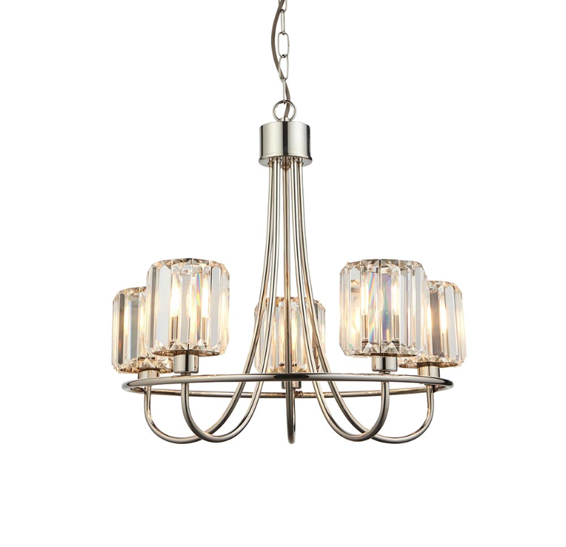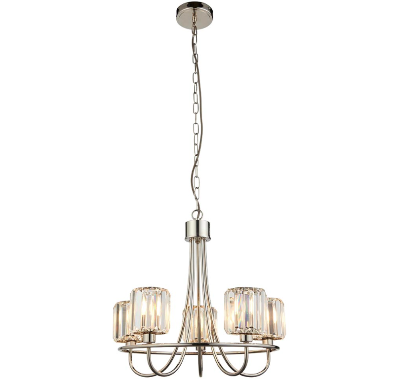 Srebrny żyrandol w stylu glamour Berenice 5 z fasetowanym szkłem