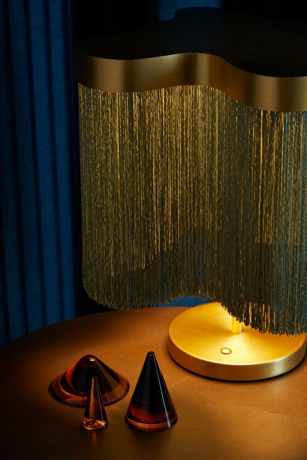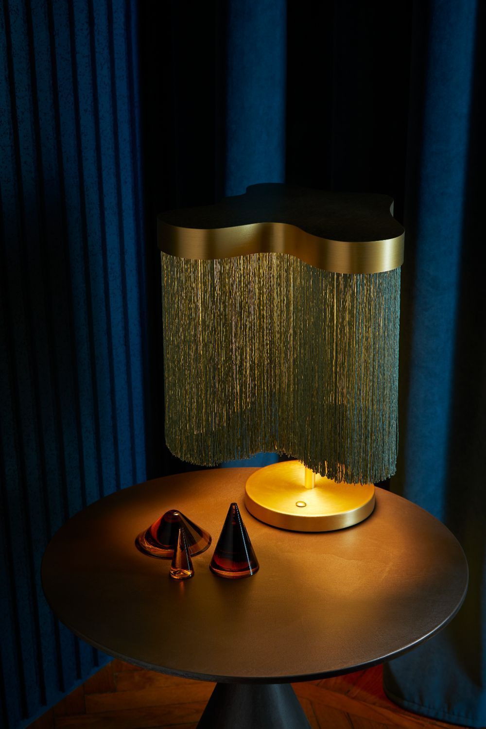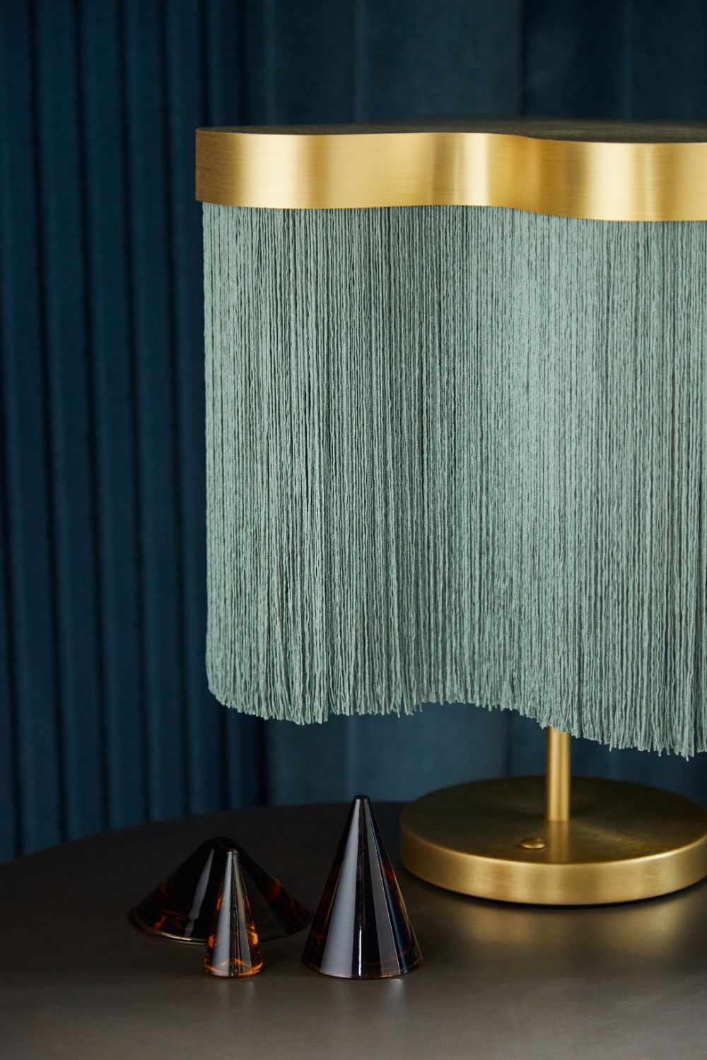 Stołowa lampa Arcipelago ta sage z frędzlami w kolorze szałwiowym