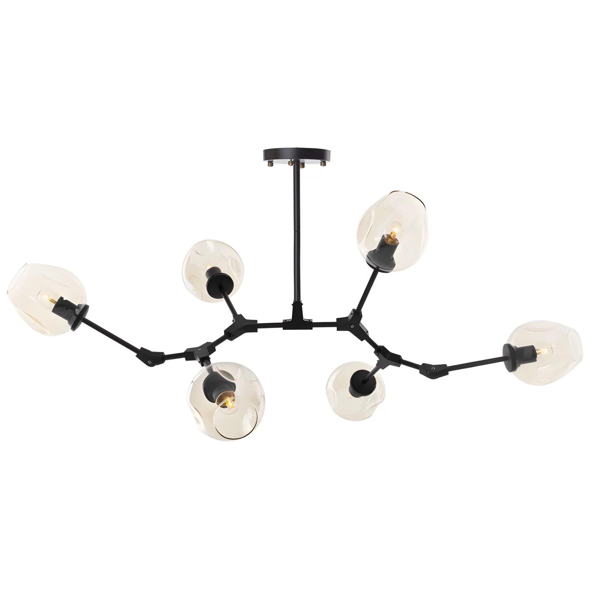 Stylowa czarna lampa Modern Orchid z sześcioma żarówkami i szklanymi kloszami