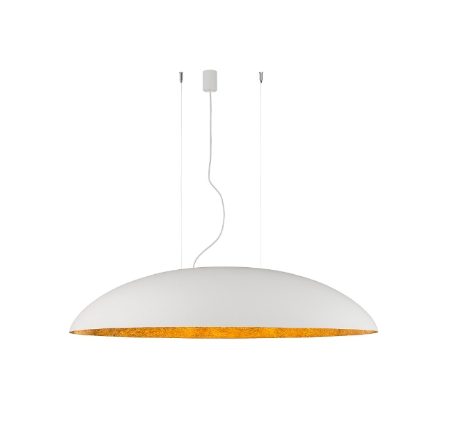 Stylowa lampa wisząca Canoe w biało-złotych barwach o długości 117 cm