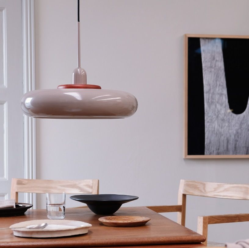 Czarna wisząca lampa nad stolikiem Planet marki Dyberg Larsen