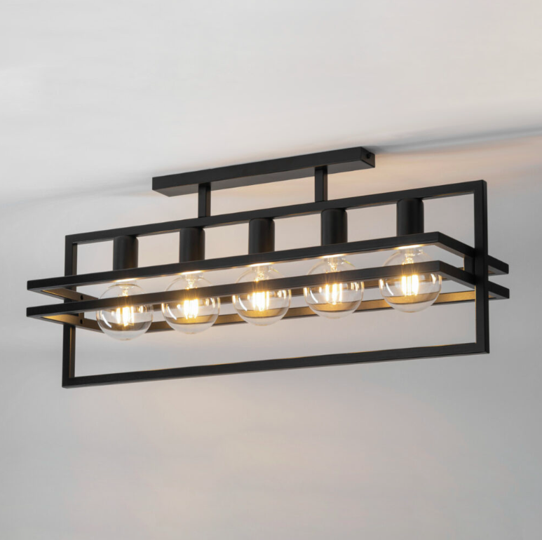 Stylowy czarny żyrandol HexaBlock 5 w loftowym wydaniu do salonu