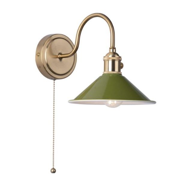 Stylowy kinkiet Hadano z oliwkowym kloszem
