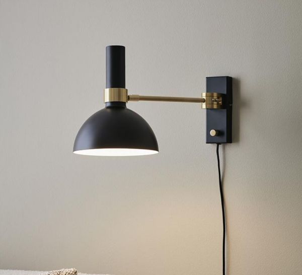 Stylowy kinkiet Larry w czarno-złotym wykończeniu ze ściemniaczem