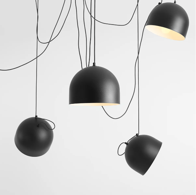 Napisz pierwszą opinię o „Stylowy wiszący żyrandol Noor 5 z dużymi czarnymi kloszami”
