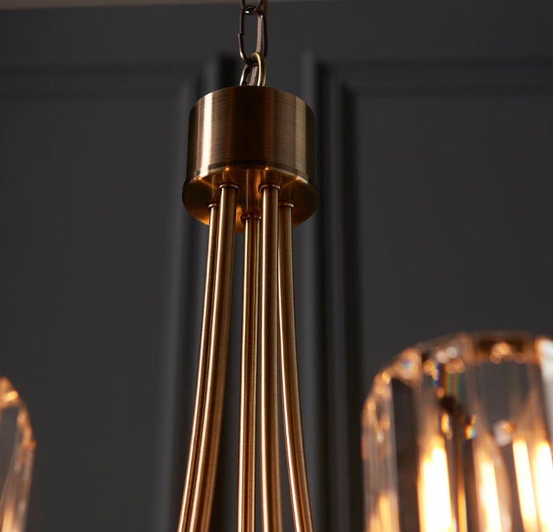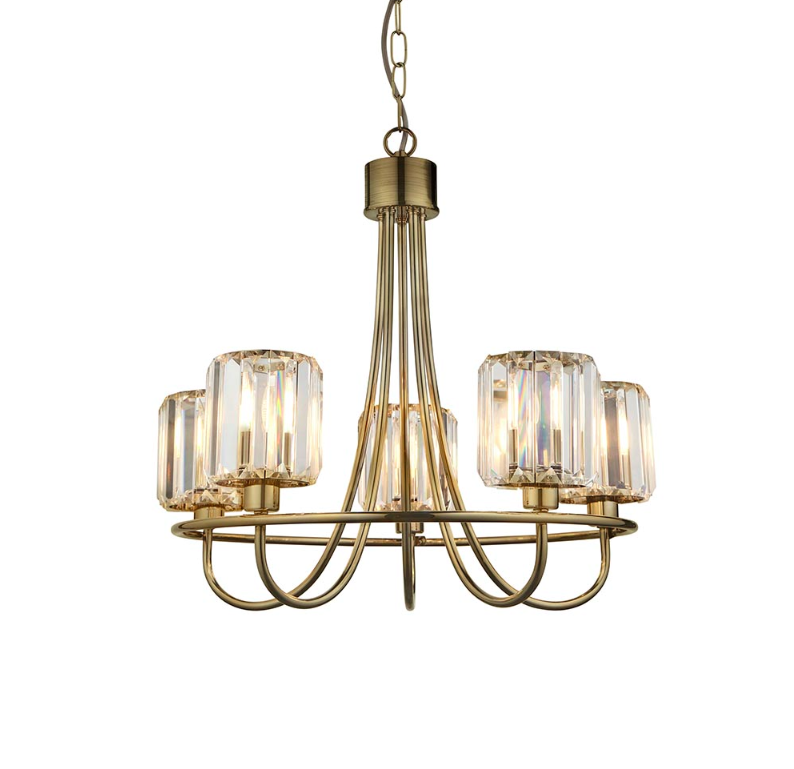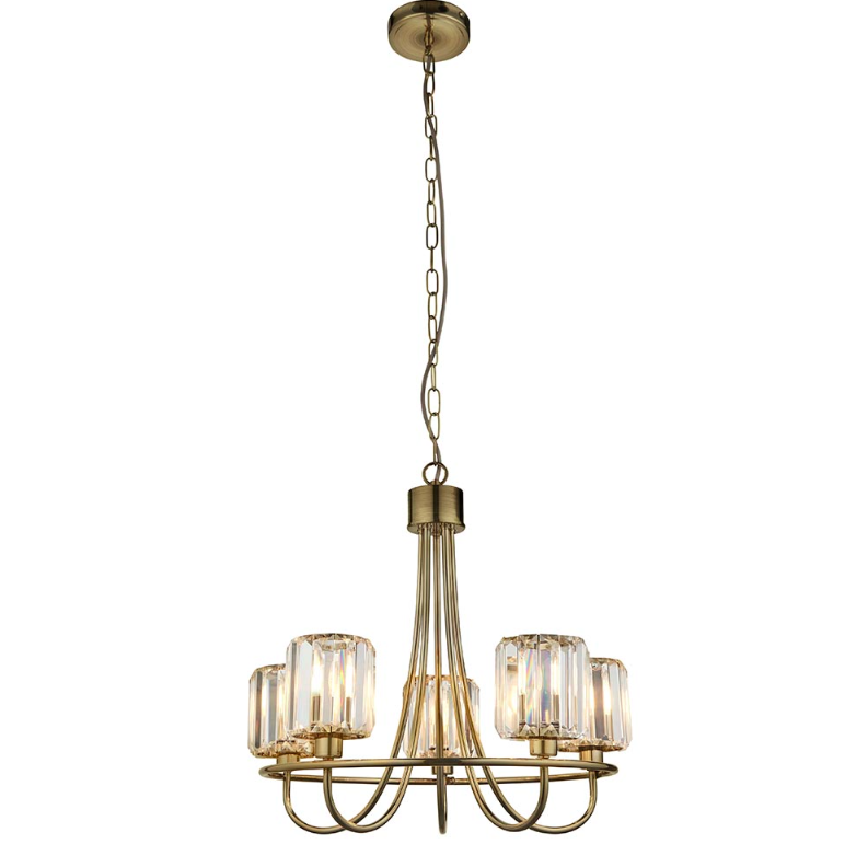 Stylowy żyrandol w stylu art deco Berenice 5 w kolorze antycznego mosiądzu