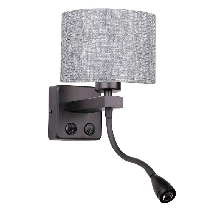 Szary kinkiet z materiałowym abażurem Polo do sypialni z regulowanym oczkiem LED