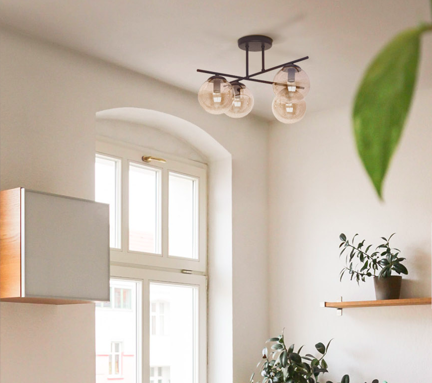 Szklana lampa sufitowa Delta z bursztynowymi kulami do kuchni