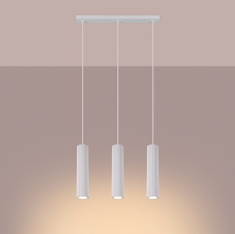 Trzypunktowa lampa wisząca Karbon 3 z białymi tubami