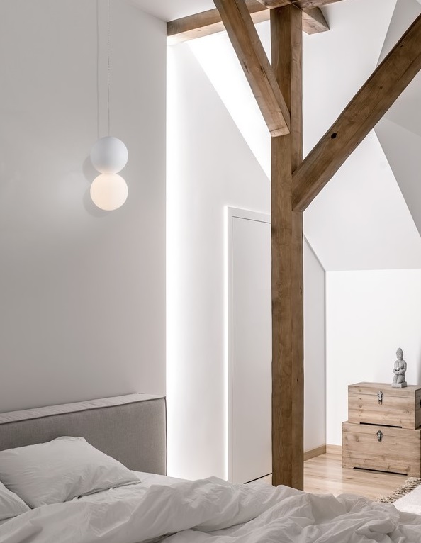 Wisząca biała lampa StoneBall 10 z gipsową kulą do sypialni