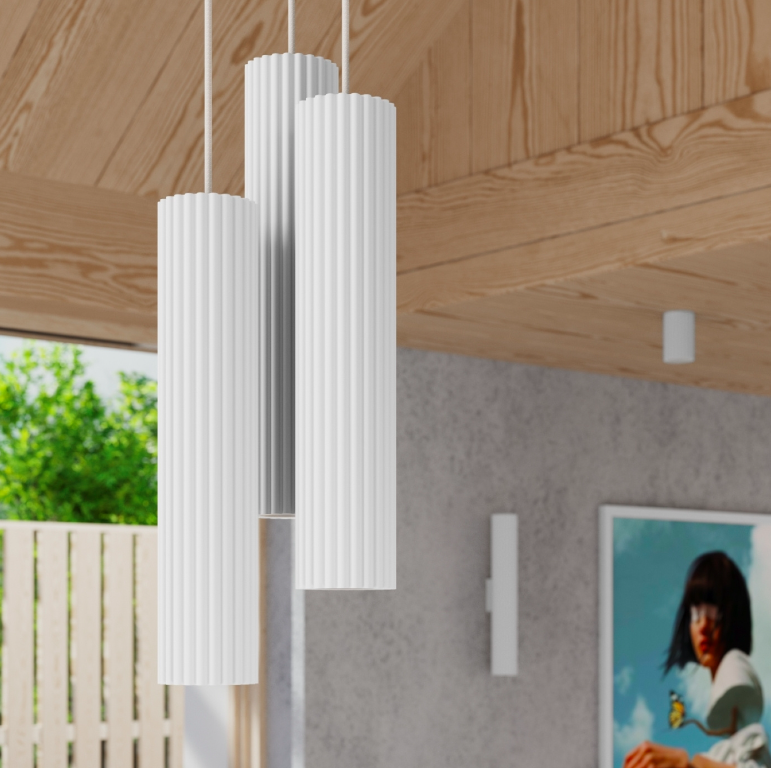 Wisząca biała lampa sufitowa Karbon 3 z karbowanymi tubami
