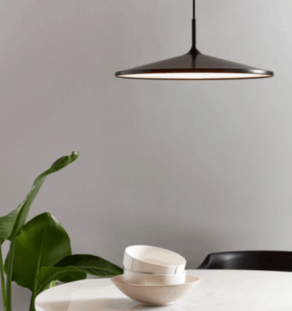 Lampa wisząca Balance wykonana jest z metalu i akrylu w czarnym, matowym wykończeniu. Płaski, okrągły klosz kieruje szeroki strumień światła w dół, co sprzyja równomiernemu doświetleniu stołu jadalnianego, wyspy kuchennej lub stolika kawowego. Kluczowe wymiary (wys. 15,8 cm × Ø 42 cm × przewód 200 cm) ułatwiają zaplanowanie zawieszenia nad blatem w salonie lub kuchni. Zintegrowany moduł LED o mocy 17,5 W oraz IP20 — do wnętrz suchych. Pasuje do stylów: skandynawski, nowoczesny, minimalistyczny. Rekomendowane pomieszczenia: salon, jadalnia, kuchnia, gabinet. Montaż: na suficie, zawieszana na przewodzie nad stołem lub wyspą kuchenną. Tak, lampa Balance ma źródło światła w komplecie. Zastosowano zintegrowany moduł LED o mocy 17,5 W, dlatego nie ma potrzeby dokupywania żarówek. Moduł świeci światłem 2700 K i współpracuje z funkcją 3-stopniowego ściemniania, co pozwala dobrać komfortowy poziom jasności nad stołem. 3-stopniowe ściemnianie w lampie Balance obsługujesz zwykłym włącznikiem ściennym. Kolejne szybkie włączenia i wyłączenia przełączają poziomy jasności w trzech krokach, od pełnej mocy do bardziej nastrojowego oświetlenia. Dzięki temu nie potrzebujesz osobnego ściemniacza, aby dopasować światło do codziennego użytkowania i wieczornego odpoczynku. Lampa Balance dobrze sprawdzi się nad stołem w jadalni, wyspą kuchenną lub stolikiem kawowym w salonie. Średnica 42 cm i przewód o długości 200 cm pozwalają wygodnie ustawić klosz nad blatem w większości standardowych wnętrz. Klasa szczelności IP20 oznacza, że model jest przeznaczony wyłącznie do suchych pomieszczeń.Dlaczego warto wybrać lampę wiszącą Balance?