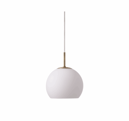 Biała, wisząca lampa Ball Glass 25 to elegancka szklana kula z subtelnymi mosiężnymi akcentami