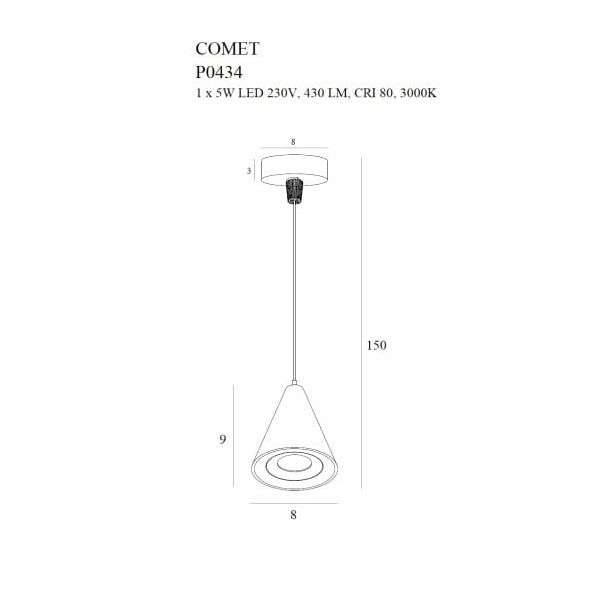 Wisząca lampa Comet Bell w kolorze czarnym o stożkowym kształcie