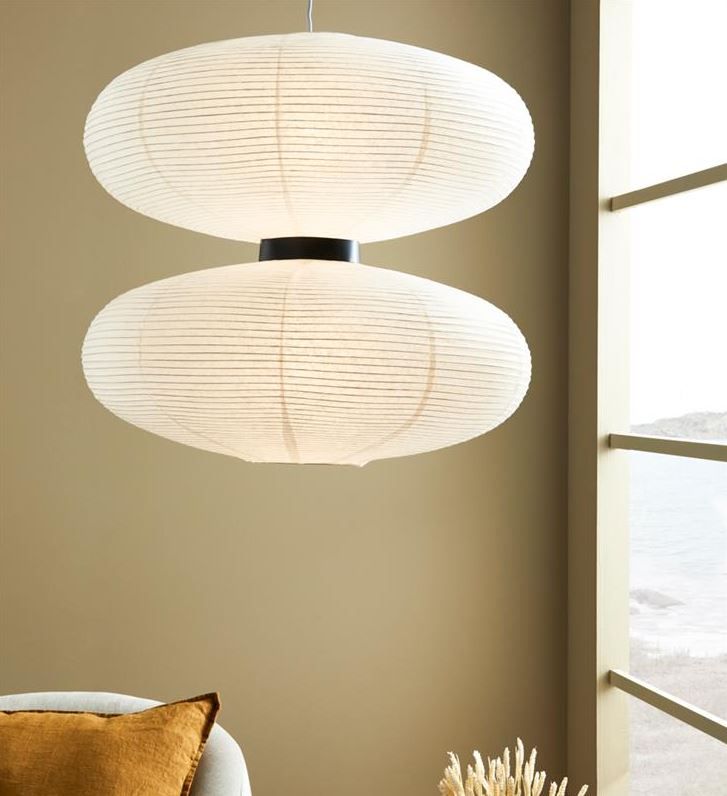 Wisząca lampa Dual w białym kolorze – wykonana z papieru w formie lampionu