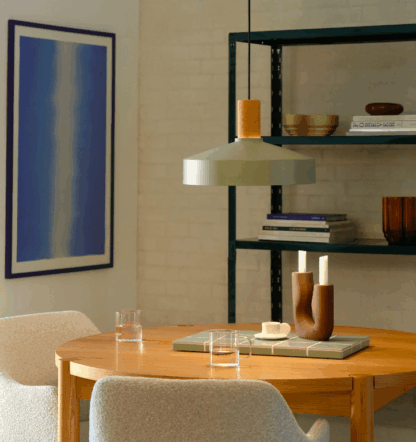 Wisząca lampa Elvas 38 z korkowym akcentem w subtelnym odcieniu zieleni