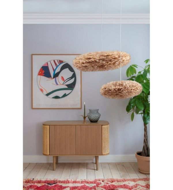 Wisząca lampa Eos Evia M w jasnobrązowym odcieniu z naturalnych piór