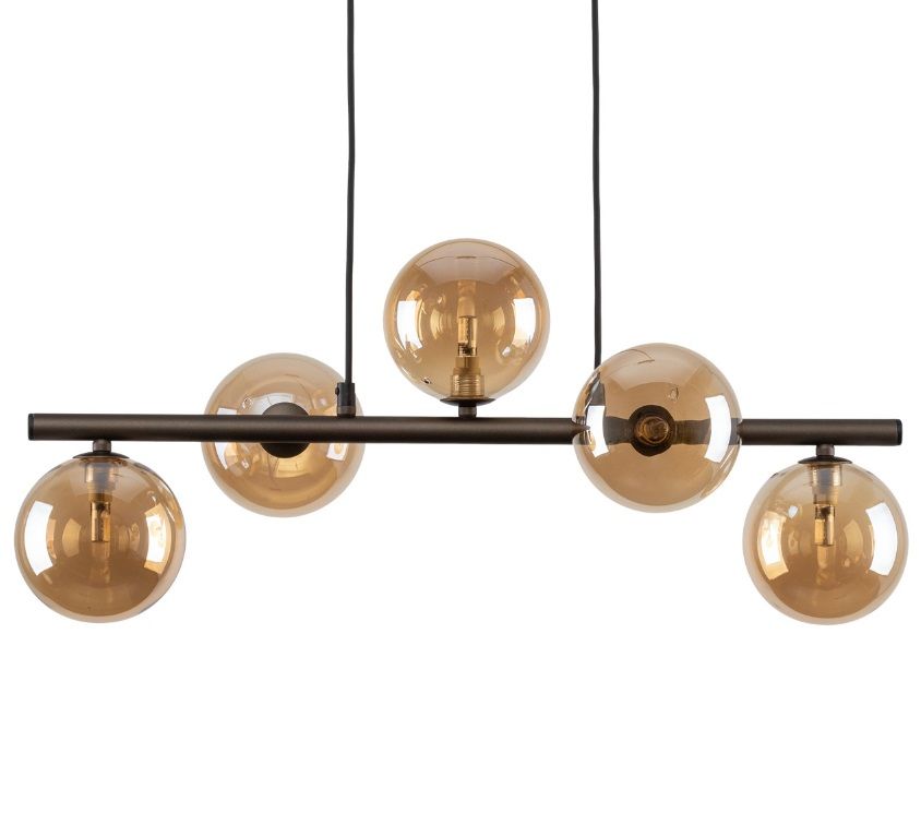 Wisząca lampa Estera TK 5 w odcieniu brązu z przezroczystymi kloszami kule.