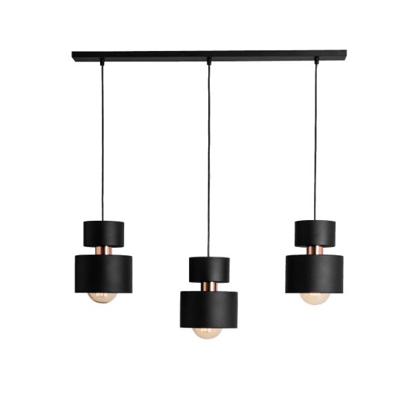 Wisząca lampa Kadm 3 z czarnym wykończeniem i miedzianymi detalami