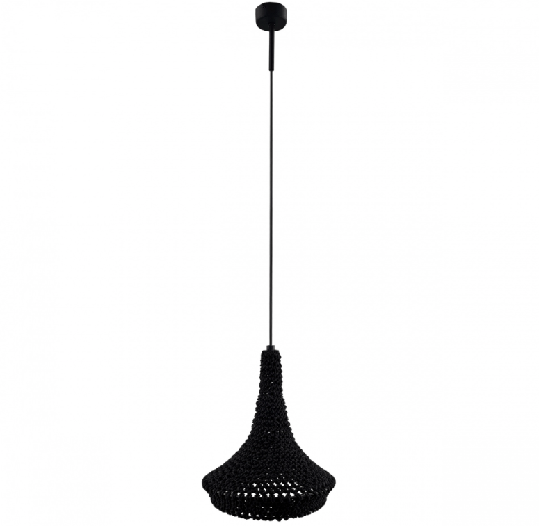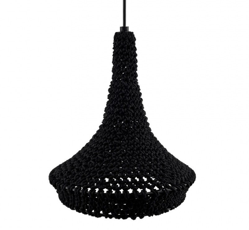 Wisząca lampa Mahaka z czarnej bawełny, wykonana na szydełku