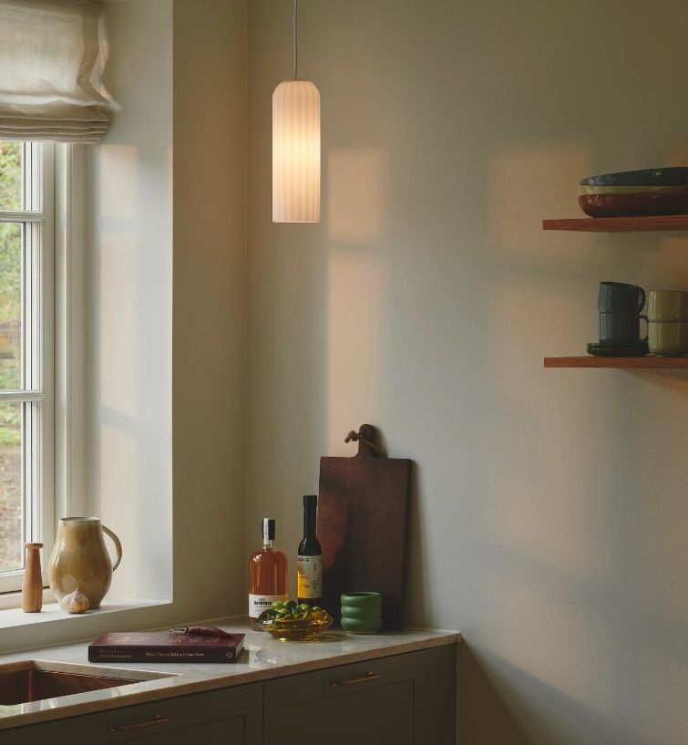 Wisząca lampa Miella z żłobionym szklanym kloszem