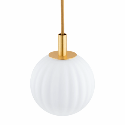 Złota lampa wisząca Paloma z ryflowaną kulą w eleganckim stylu
