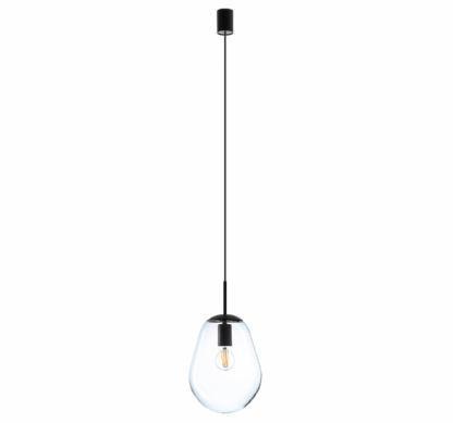 Wisząca lampa Pear S z przezroczystego szkła z czarnymi akcentami