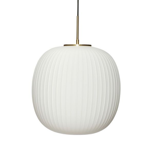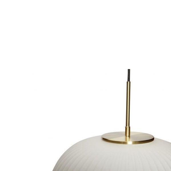 Wisząca lampa Serene L z białym, prążkowanym kloszem ze szkła