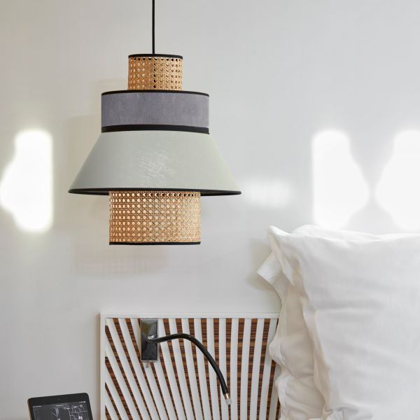 Wisząca lampa Singapour XML Amande Anthracite z plecionym kloszem