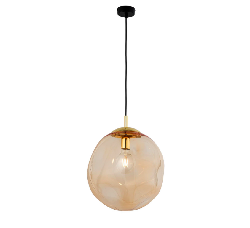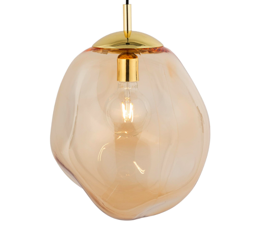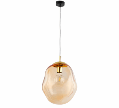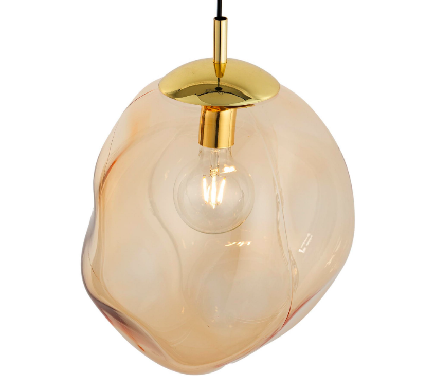 Wisząca lampa SOL w odcieniach bursztynu i złota z artystycznie ukształtowanym szklanym kloszem
