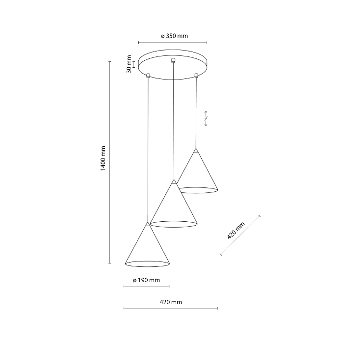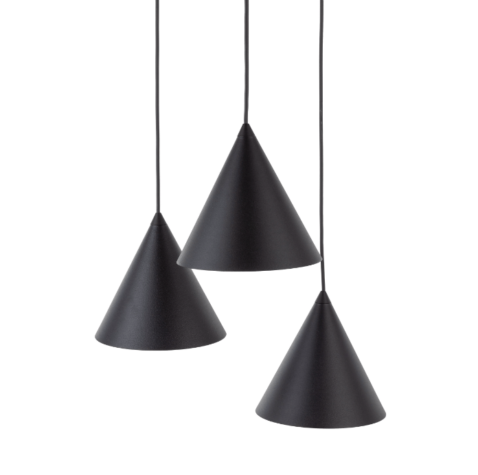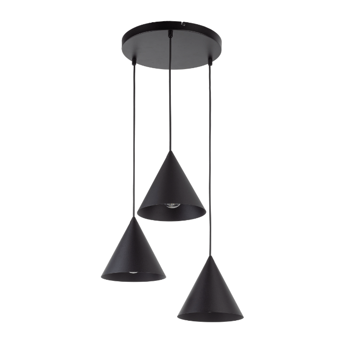 Napisz pierwszą opinię o „Wisząca lampa sufitowa Cono TK z trzema czarnymi stożkowymi kloszami”