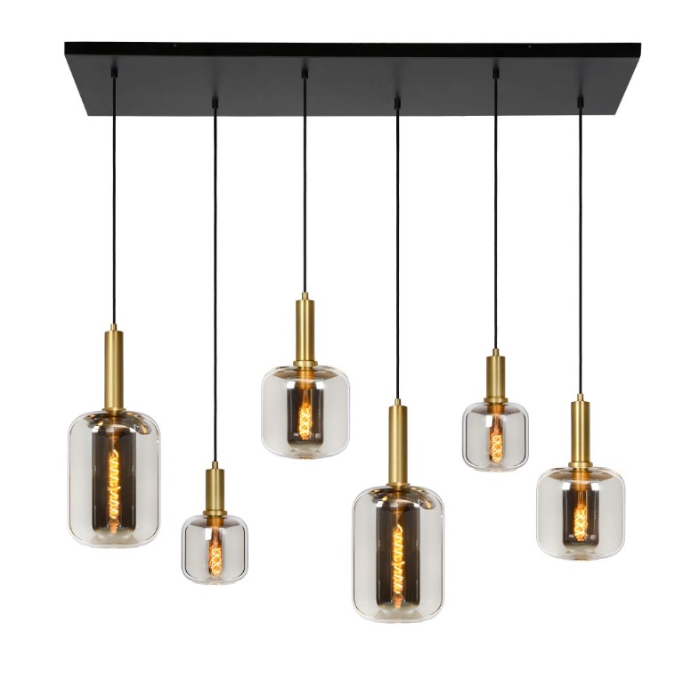 Wisząca lampa sufitowa Joanet 6 z przydymionymi kloszami do salonu