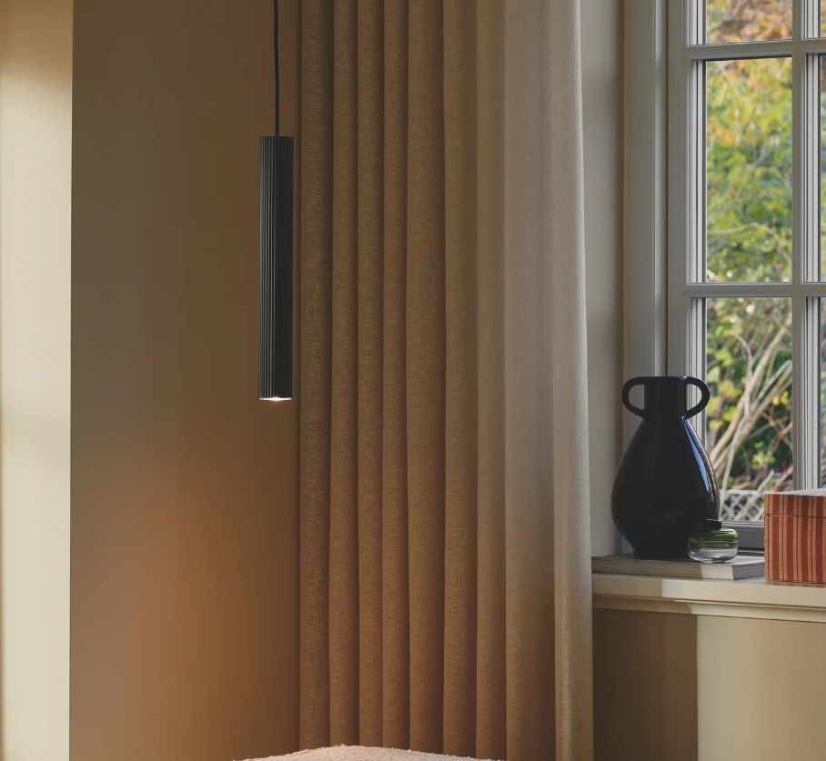 Wisząca lampa Vico z czarną, karbowaną tubą