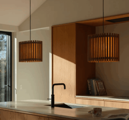 Wisząca lampa z lameli Komorebi UMAGE, 33 cm, ciemne drewno