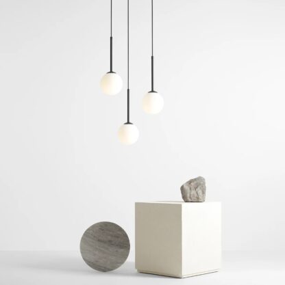 Wisząca lampa Bosso S w czarnym kolorze z mlecznym kloszem