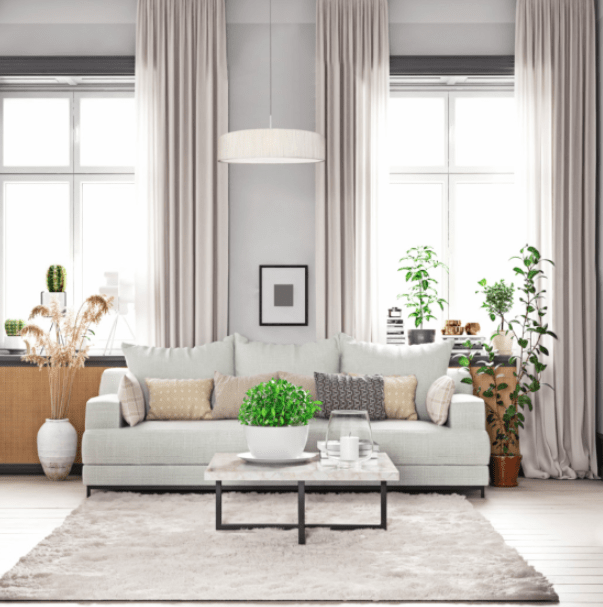 Wiszący żyrandol Turda III w odcieniu beżu z spłaszczonym kremowym abażurem