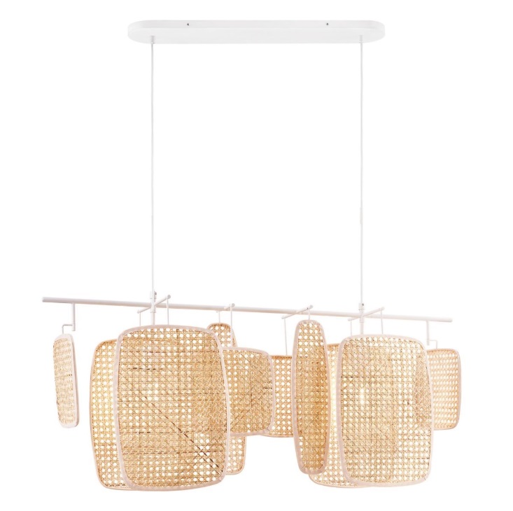 Wyprzedaż! Stylowa podłużna lampa wisząca Boho Bali z rattanowym kloszem