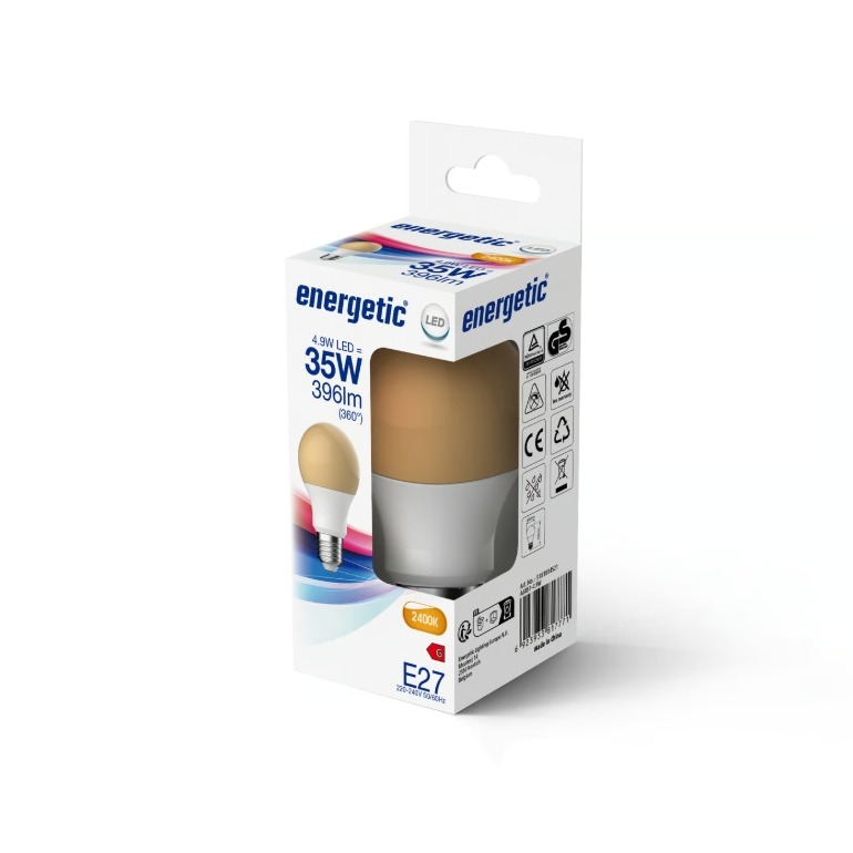Bursztynowe szkło klosza filtruje światło, nadając mu złocisty, świecowy odcień 2400K, wyraźnie cieplejszy niż standardowe żarówki 2700K. Przy strumieniu 396 lm i mocy zaledwie 4,9 W sprawdza się jako źródło nastrojowego podświetlenia w lampach stołowych, kinkietach czy otwartych oprawach, gdzie widoczna żarówka pełni funkcję dekoracyjną. Warto pamiętać, że ta wersja nie obsługuje ściemniania, więc do obwodów z dimmerem wybierz wariant dimmable z tej samej serii Nordlux.