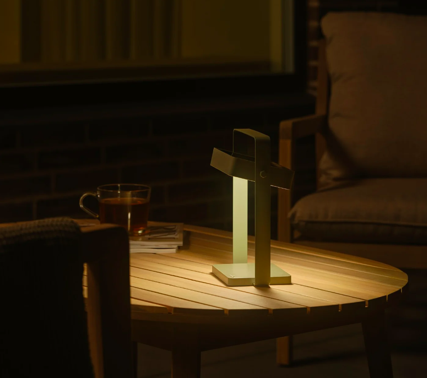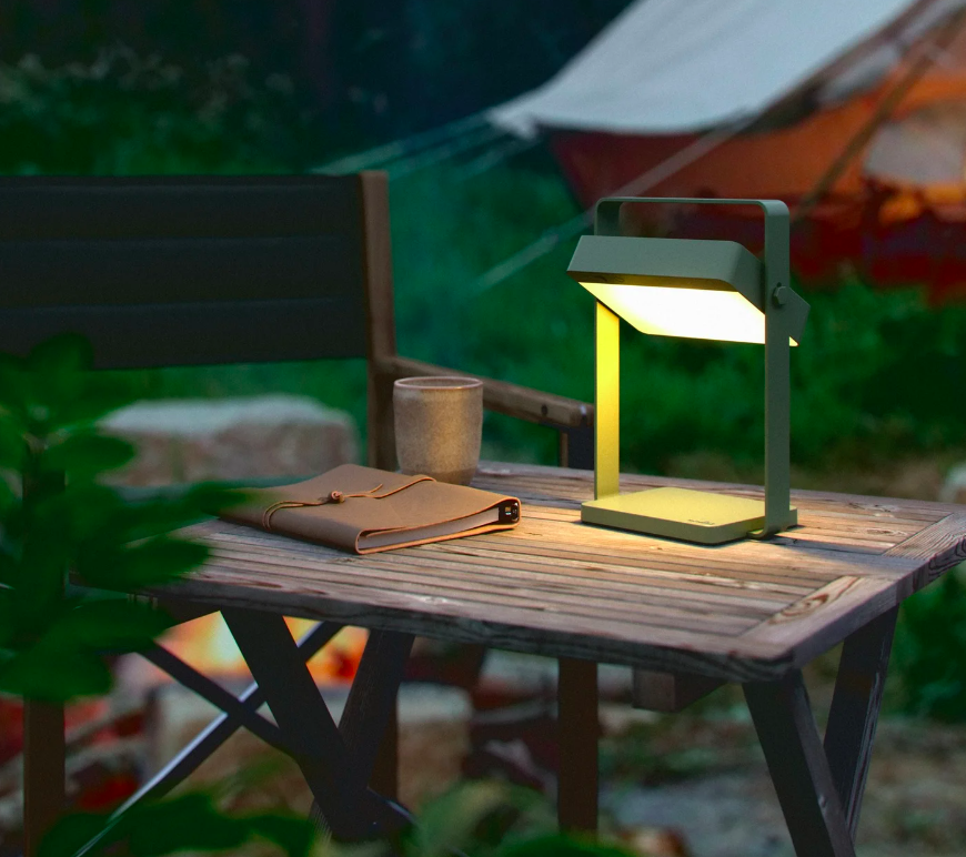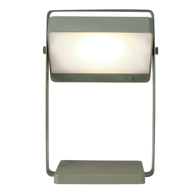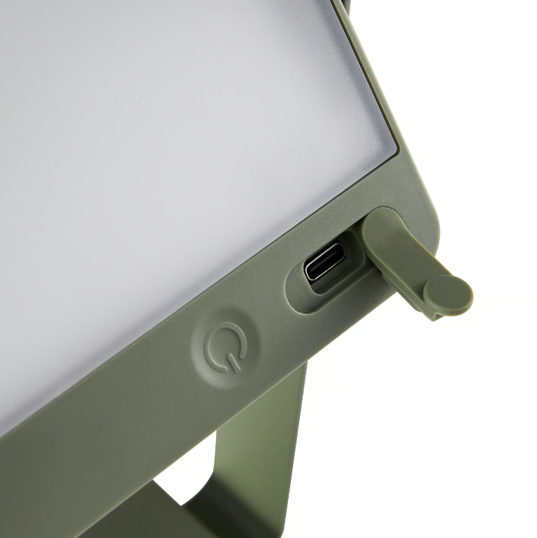 Zielona solarna lampka stołowa Saulio LED na taras z ładowarką USB i klasą szczelności IP44