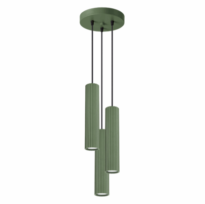 Zielona wisząca lampa sufitowa Karbon 3 z oliwkowymi tubami