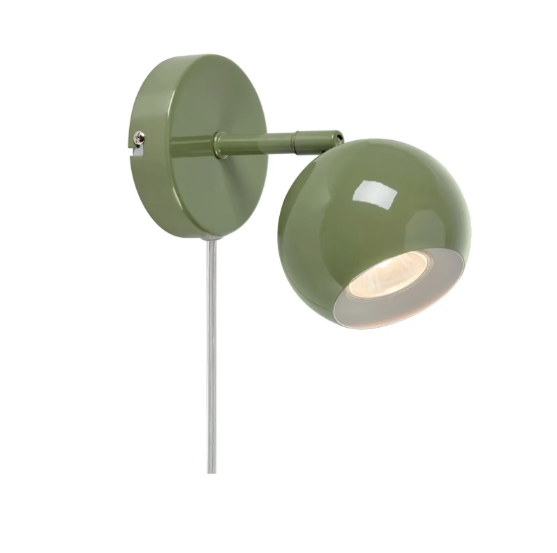 Kinkiet Pops od producenta Markslöjd wykonany jest z metalu w wykończeniu zielonym. Zaokrąglony klosz (Ø 10 cm) rozprasza światło punktowo, a regulowana głowica umożliwia precyzyjne skierowanie strumienia na książkę, blat roboczy czy element dekoracyjny. Kluczowe wymiary (wys. 14 cm × szer. 10 cm × dł. 18,5 cm) ułatwiają zaplanowanie miejsca montażu w strefie użytkowej. Model wyposażony w przewód z wtyczką pozwala na elastyczne umieszczenie przy łóżku, nad biurkiem lub obok fotela. GU10 (maks. 7 W) oraz IP20 — do wnętrz suchych.Styl i aranżacja
