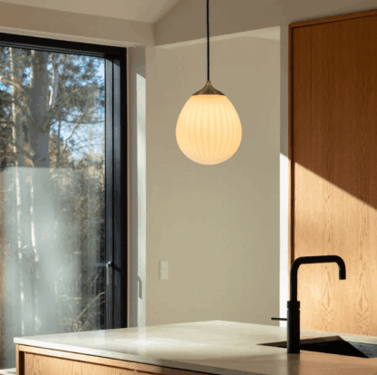 Czarna wisząca lampa Around The World z dmuchanym ryflowanym kloszem