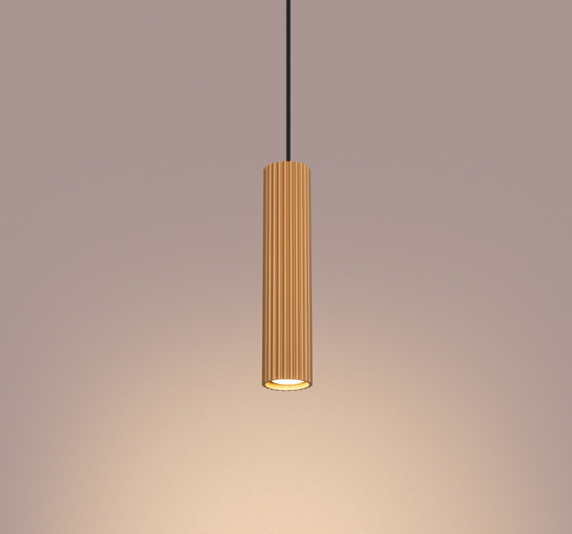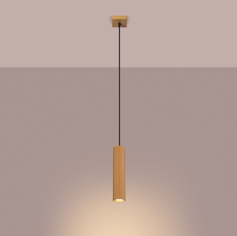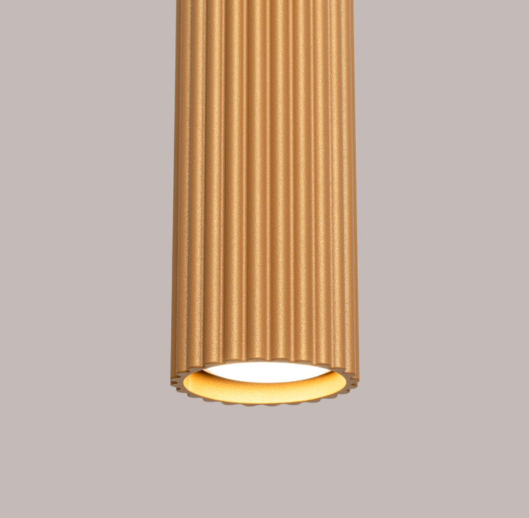 Żłobiona złota lampa wisząca w kształcie tuby Karbon