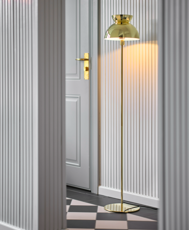 Złocista błyszcząca lampa stojąca Butterfly od Frandsen