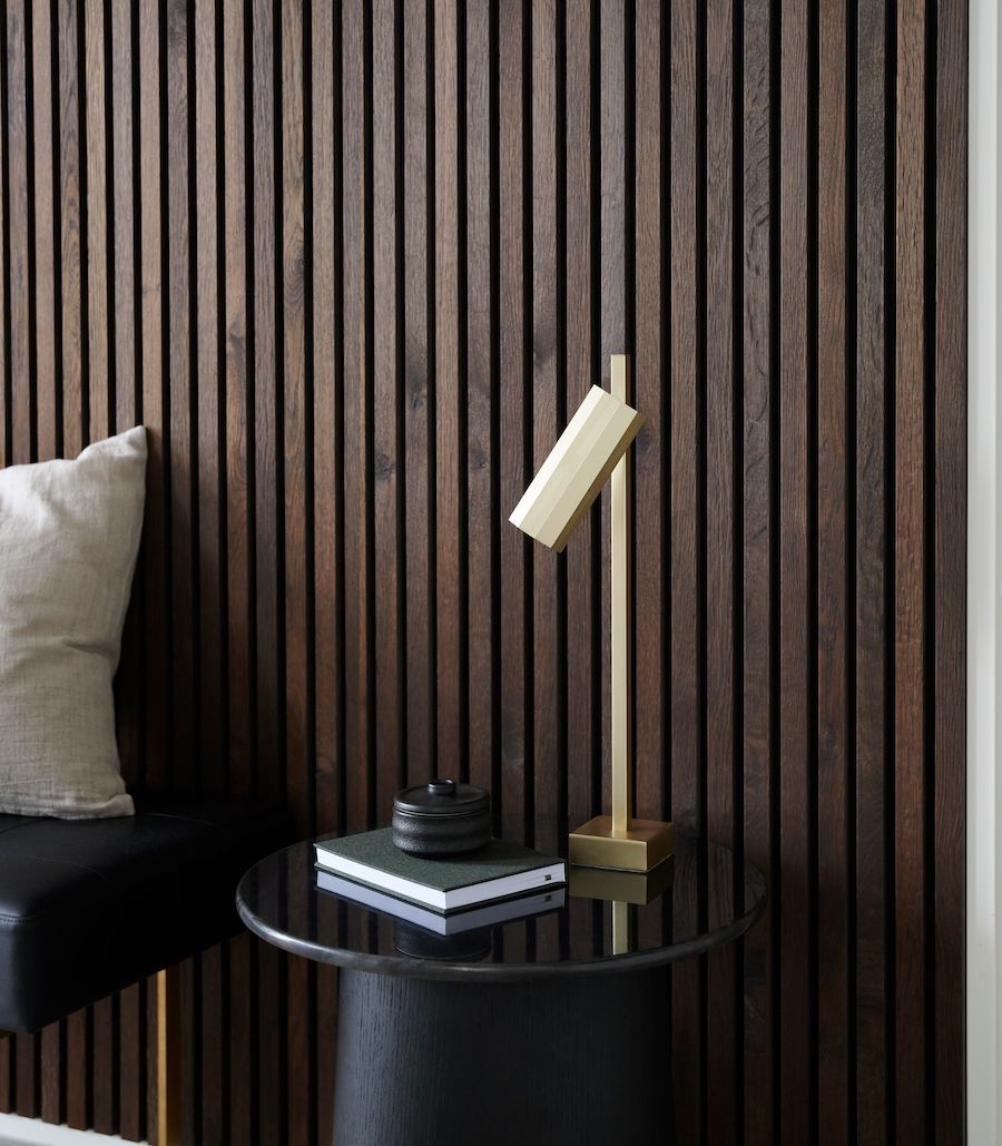 Złota lampa biurkowa Alanis - Nordlux - na komodę, na stolik kawowy, do gabinetu