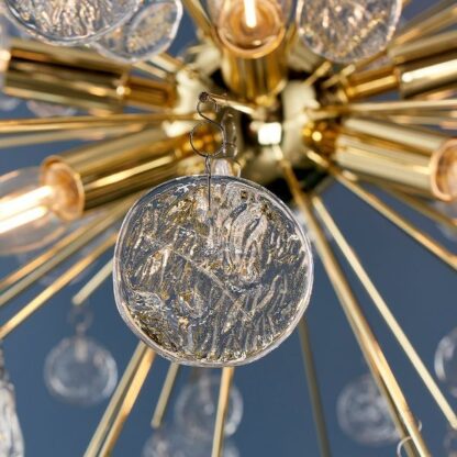Złota lampa wisząca Calla z szklanymi wisiorkami