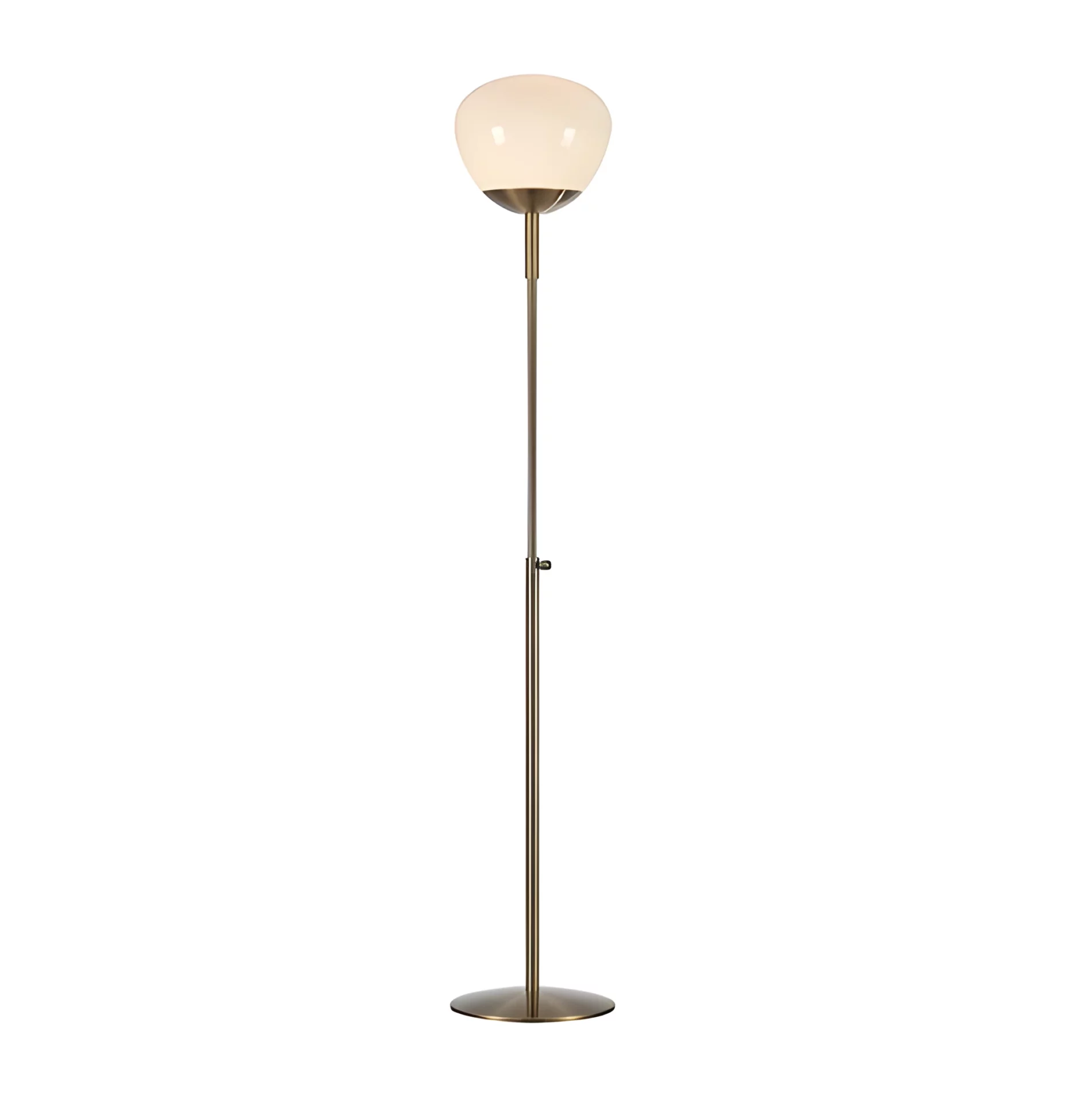 Złota podłogowa lampa Rise z kloszem ze szkła