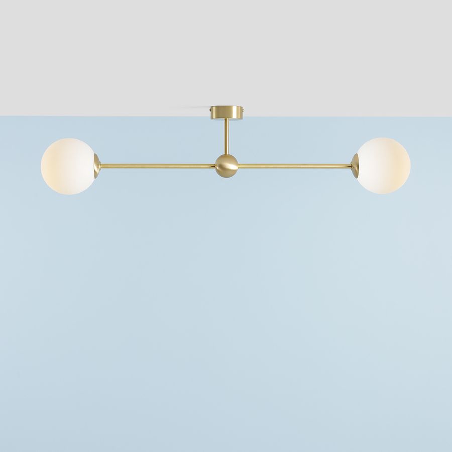 Napisz pierwszą opinię o „Złota, podłużna lampa sufitowa Pearl Long 2 z mlecznymi kloszami”